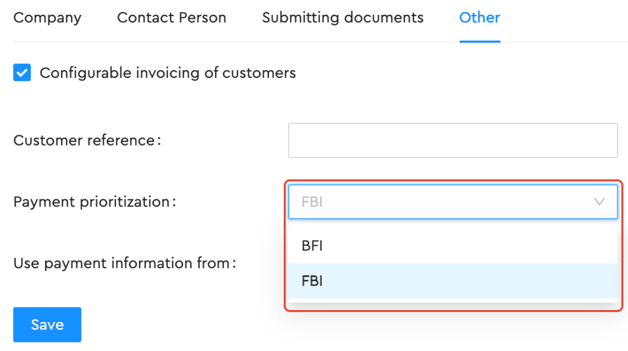 - Payment prioritization is the order in which you want us to prioritize when we scan the invoice. FBI stands for FIK - Bank Details - IBAN, while BFI stands for Bank Details - FIK - IBAN.