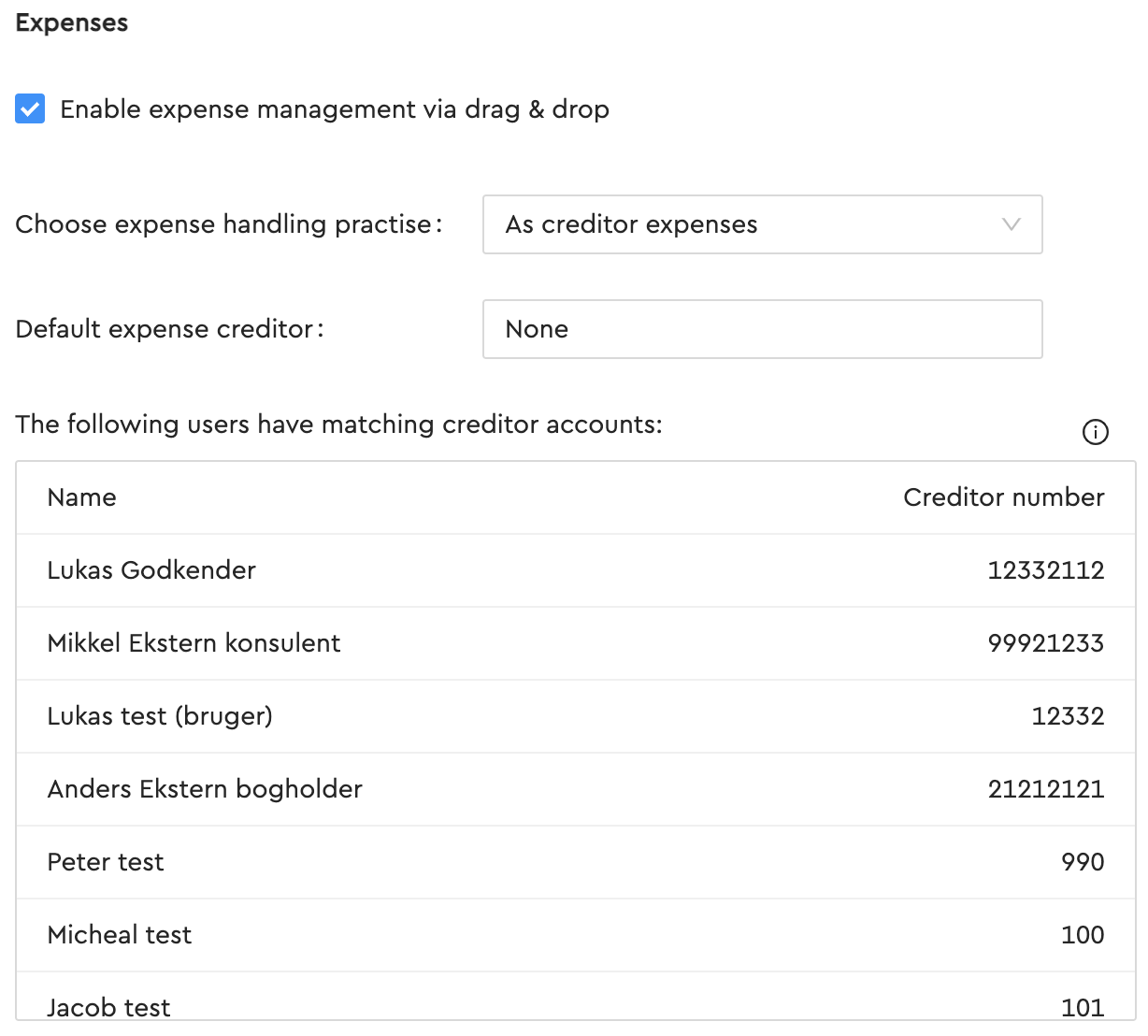 Once you have done this, your users will automatically be paid when they submit personal expenses through the mobile app. You can also set up a default expense creditor that will be picked, if the user dont have a matching creditor account.