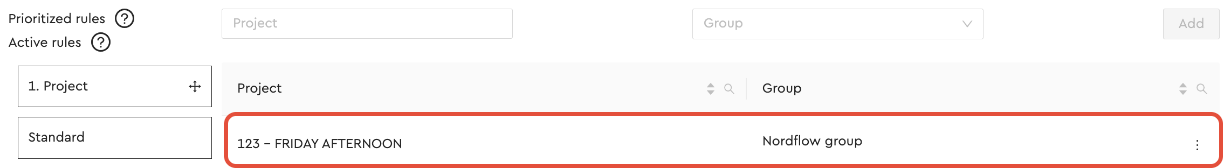 Once you have selected a project and a group. Then click on the add button and the rule will be created.