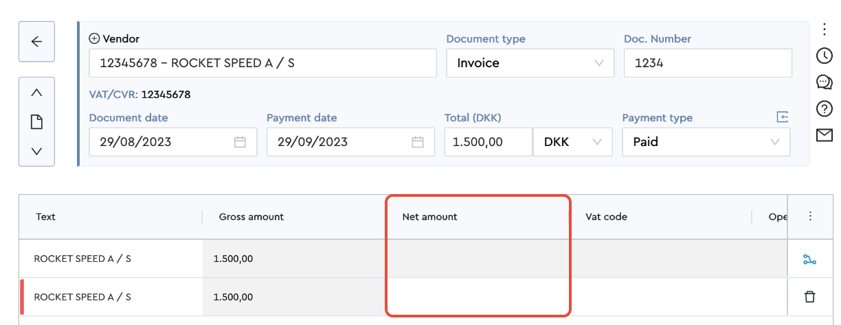 - Depending on your VAT code, the system will automatically calculate the gross amount.